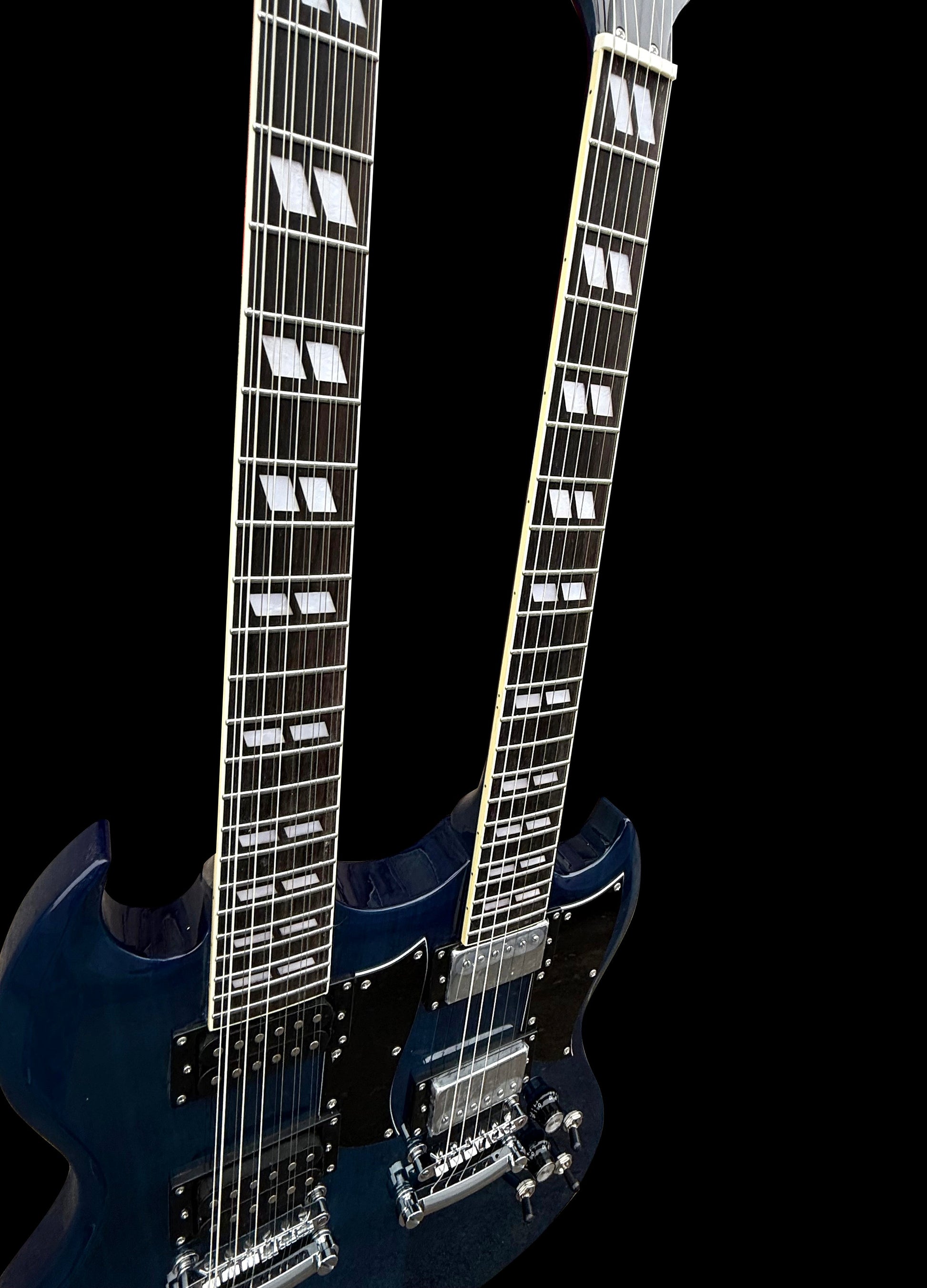Firefly Double Necks 12 Strings +6 Strings FFLGS Electric Guitar With a Hardcase (Transparent Blue Color)